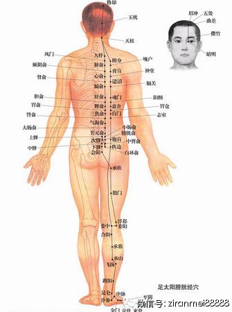 为什么要从膀胱经入手呢?先观察一下膀胱经巡行的路线和穴位的名称,膀胱经从头走足,贯穿人体,在人体背部有连着各个五脏六腑的俞穴,这些俞穴是五脏六腑映射到膀胱经上的排毒通道,也就是说疏通膀胱经可以顾及到五脏六腑,无论你身体什么问题什么毛病,特别是慢性病,只要疏通膀胱经,就会得到一定的缓解。