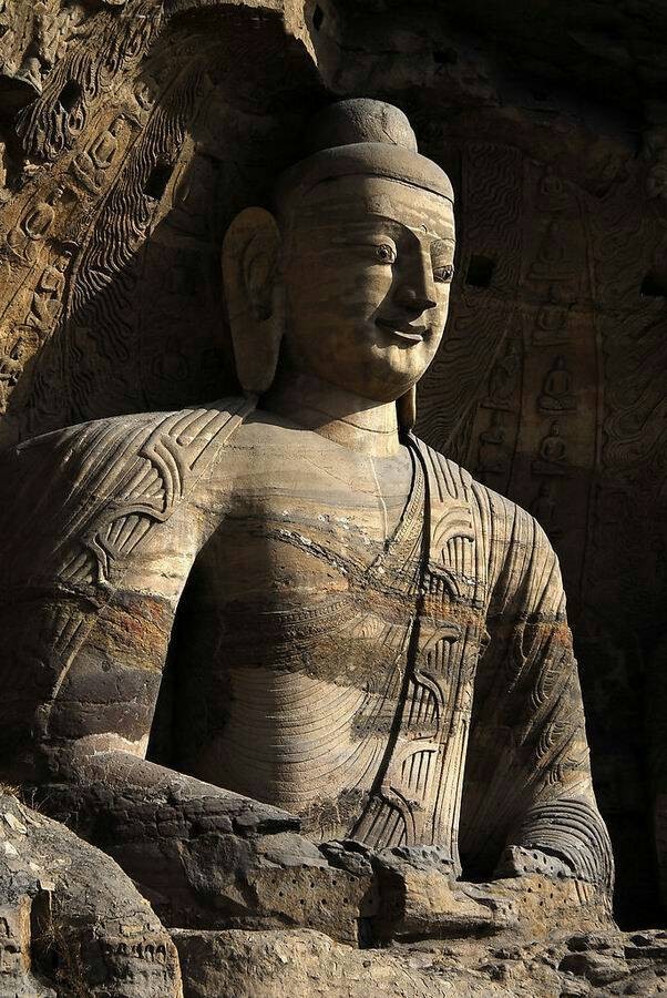 四川的乐山大佛,弥勒佛座像,石料,通高71米,公元803年建成。位于峨眉山东31公里的乐山市,依凌云山栖霞峰临江峭壁凿造而成,又名凌云大佛,开凿于唐玄宗开元初年(公元713年)。历时90年大佛终告完成。佛像高71米,佛头长14.7米,头宽10米,肩宽24米,耳长7米,耳内可并立二人,脚背宽8.5米,可坐百余人,素有“佛是一座山,山是一尊佛”之称。