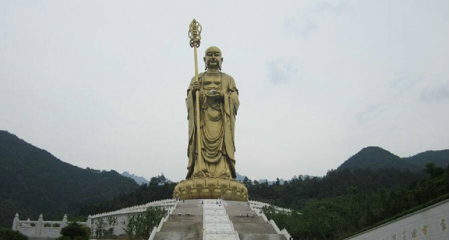 河南鲁山大佛,卢舍那佛立像,青铜材料,通高168米,相当于50层楼高,重6400吨,公元2005年建成。 位于河南省平顶山市鲁山县上汤赵村佛泉寺内,总高168米(大佛身高108米,莲花宝座高20米,金刚座高25米,须弥座高15米),是全世界最大的佛像,称为“佛山金佛”。其造型庄严飘逸、气势独特,真乃“当惊世界殊”。造型完整、有明确的说法手印的铜铸“佛山金佛”应运而生,成为新的中方佛。